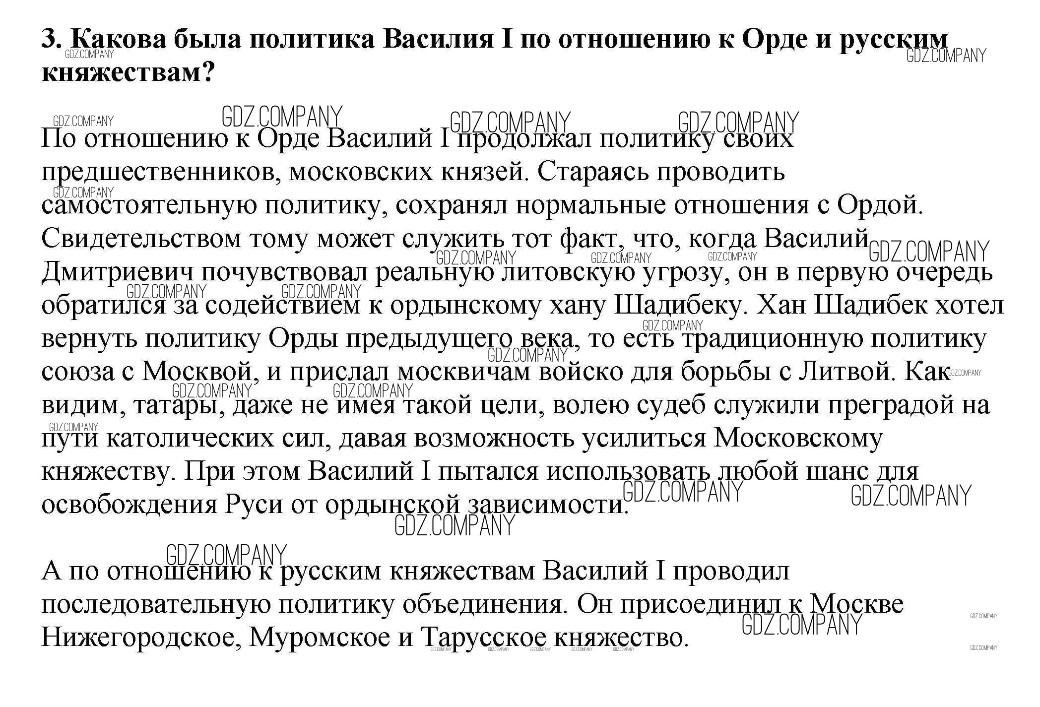 Здесь готовые ответы по Истории за 6 (шестой) класс от Арсентьев, Данилов, Стефанович Учебник (издательство: Просвещение от 2016 г.) № 3