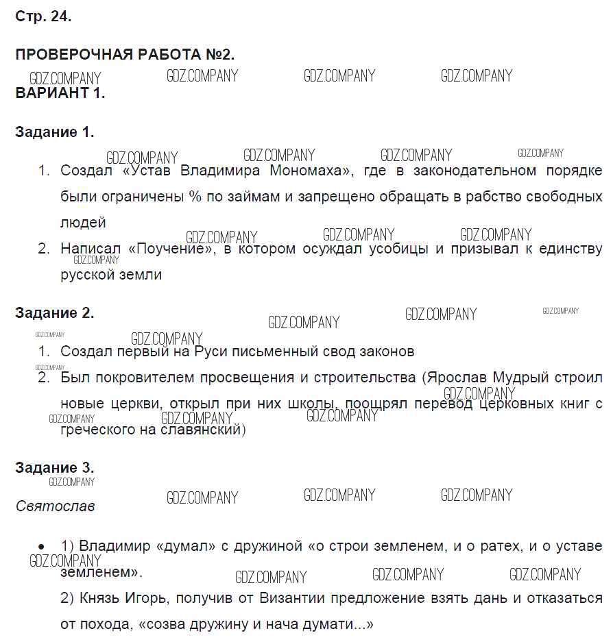 Здесь готовые ответы по Истории за 6 (шестой) класс от Артасов Контрольные работы УМК (издательство: Просвещение от 2016 г.) № 24