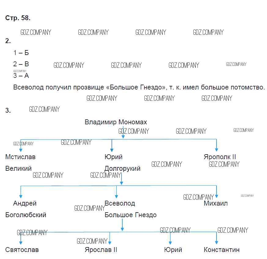 Здесь готовые ответы по Истории за 6 (шестой) класс от Артасов, Данилов, Косулина, Соколова Рабочая тетрадь (издательство: Просвещение от 2016 г.) № стр. 58