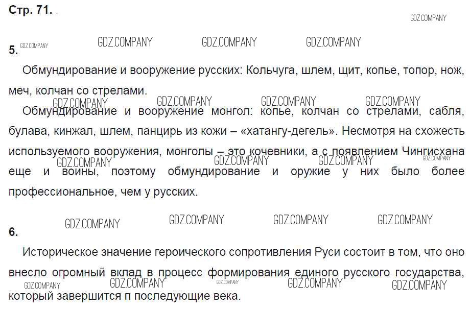 Здесь готовые ответы по Истории за 6 (шестой) класс от Артасов, Данилов, Косулина, Соколова Рабочая тетрадь (издательство: Просвещение от 2016 г.) № стр. 71