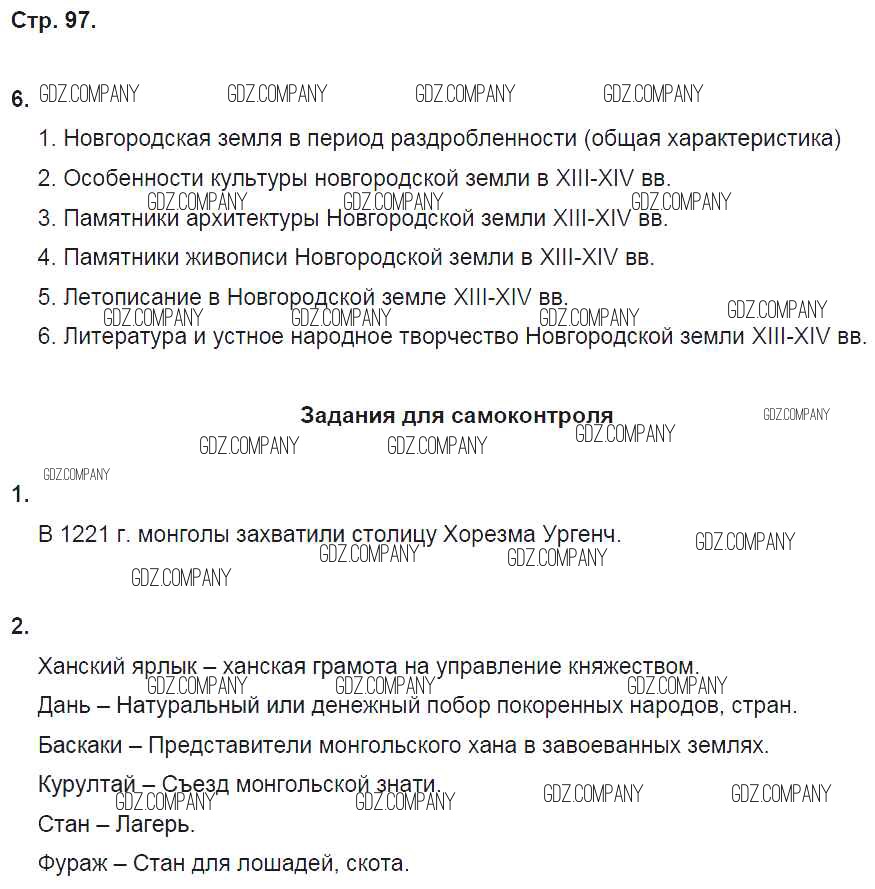 Здесь готовые ответы по Истории за 6 (шестой) класс от Артасов, Данилов, Косулина, Соколова Рабочая тетрадь (издательство: Просвещение от 2016 г.) № стр. 97