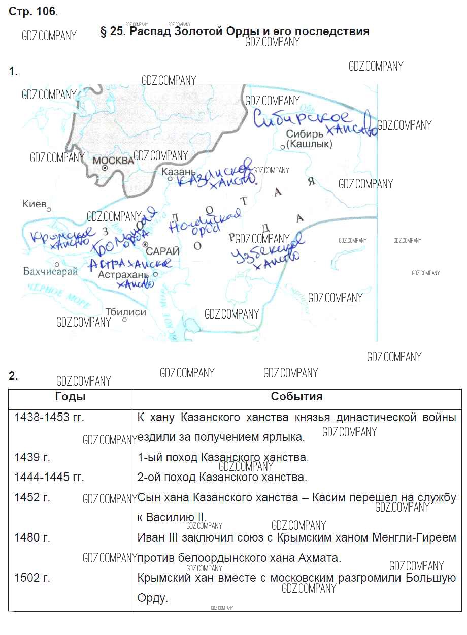 Здесь готовые ответы по Истории за 6 (шестой) класс от Артасов, Данилов, Косулина, Соколова Рабочая тетрадь (издательство: Просвещение от 2016 г.) № стр. 106