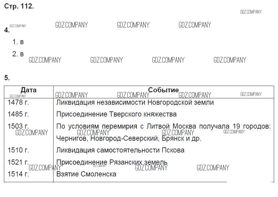 Здесь готовые ответы по Истории за 6 (шестой) класс от Артасов, Данилов, Косулина, Соколова Рабочая тетрадь (издательство: Просвещение от 2016 г.) № стр. 112