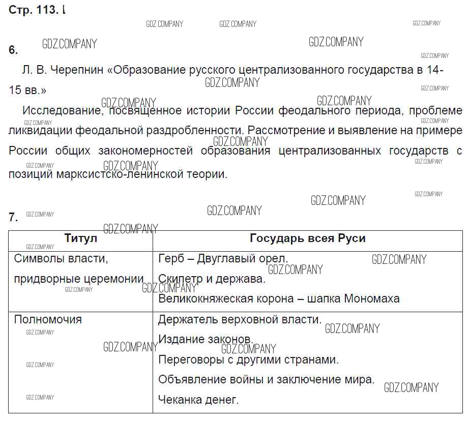 Здесь готовые ответы по Истории за 6 (шестой) класс от Артасов, Данилов, Косулина, Соколова Рабочая тетрадь (издательство: Просвещение от 2016 г.) № стр. 113