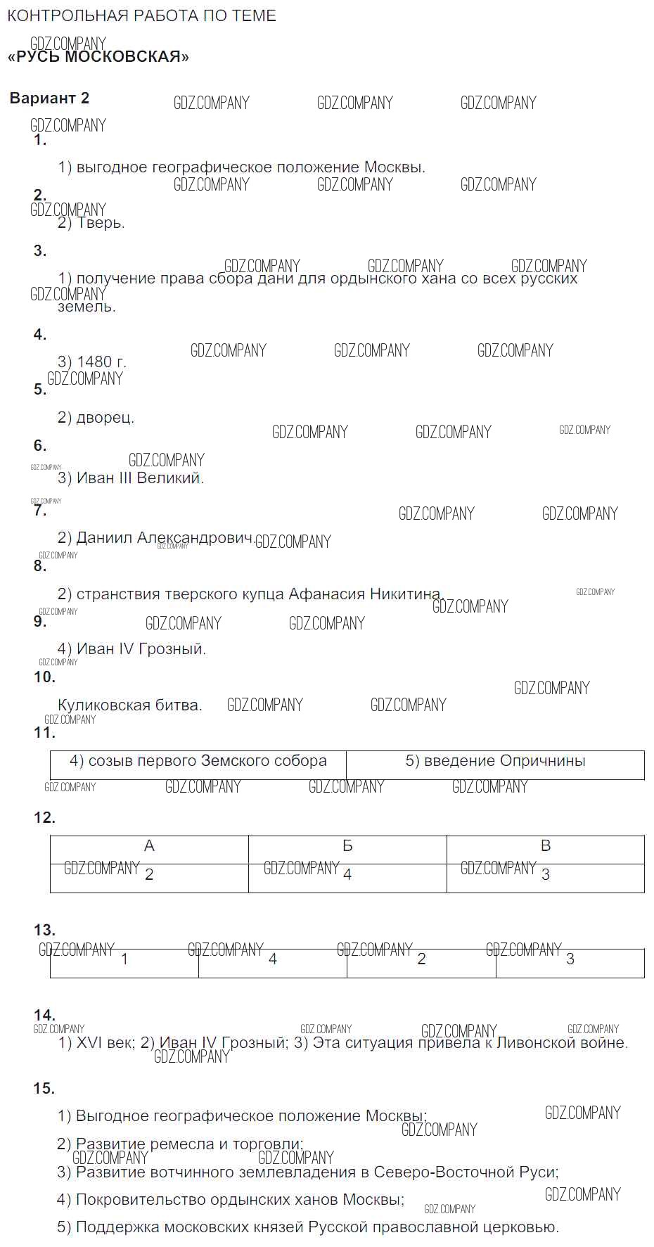 Здесь готовые ответы по Истории за 6 (шестой) класс от Артасов, Гаврилина Тематический контроль (издательство: Национальное образование от 2015 г.) № Вариант-2
