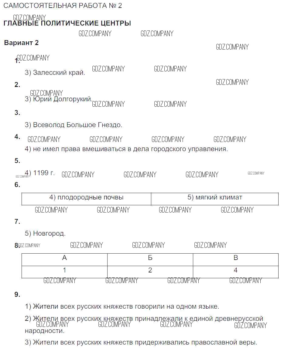 формирование самостоятельных государственных образований на Руси / ср-№2 / вариант-2