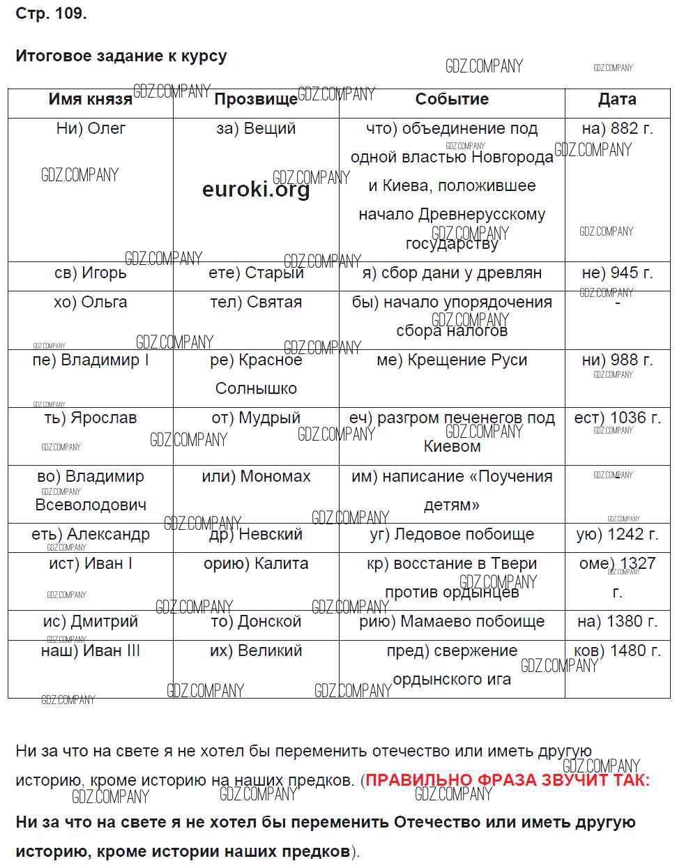 Здесь готовые ответы по Истории за 6 (шестой) класс от Баранов Рабочая тетрадь Алгоритм успеха (издательство: Вентана-граф от 2017 г.) № 109