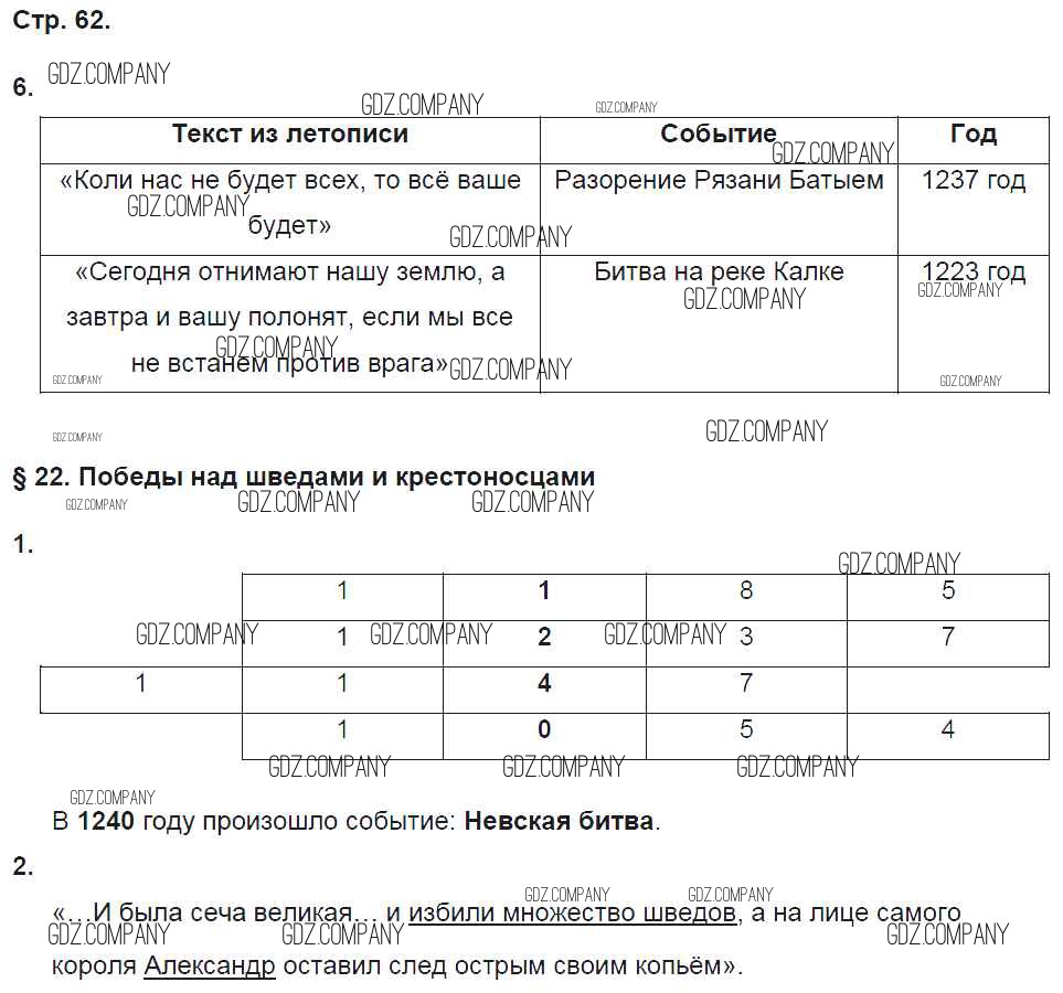 Здесь готовые ответы по Истории за 6 (шестой) класс от Баранов Рабочая тетрадь Алгоритм успеха (издательство: Вентана-граф от 2017 г.) № 62