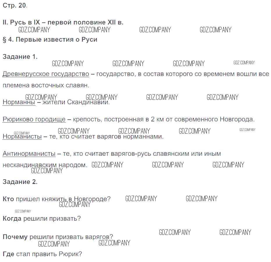 Здесь готовые ответы по Истории за 6 (шестой) класс от Чернова Рабочая тетрадь УМК (издательство: Экзамен от 2017 г.) № 20