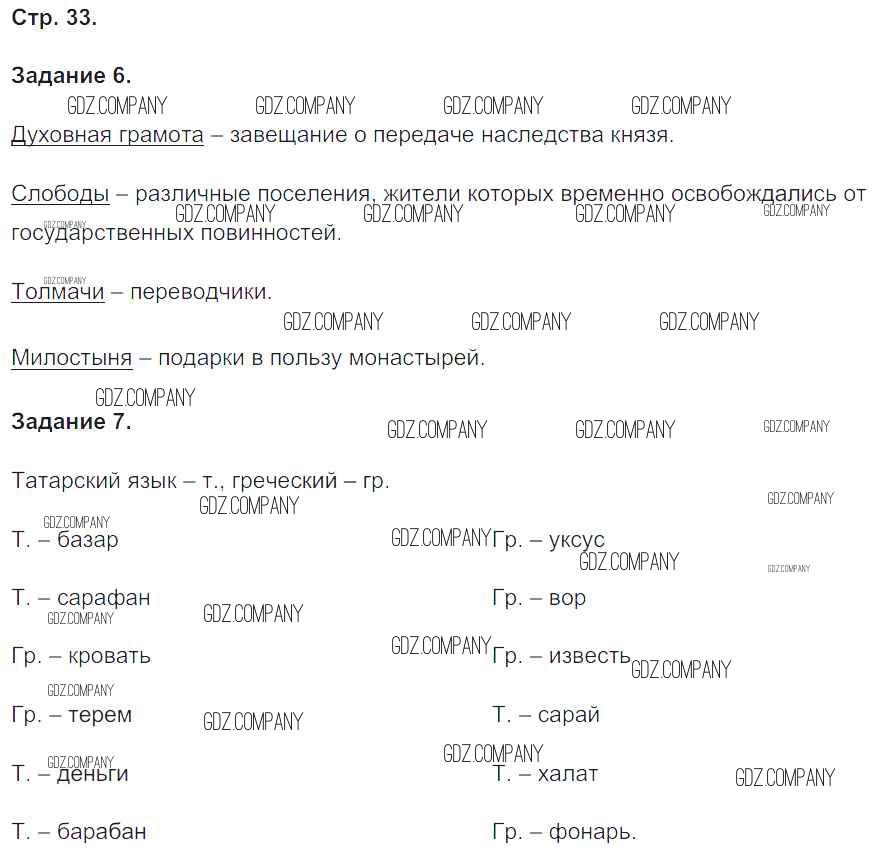 Здесь готовые ответы по Истории за 6 (шестой) класс от Чернова Рабочая тетрадь УМК (издательство: Экзамен от 2017 г.) № 33