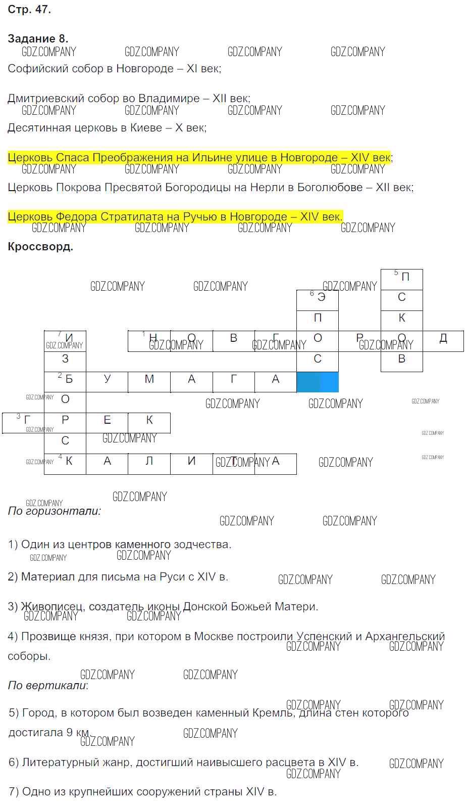 Здесь готовые ответы по Истории за 6 (шестой) класс от Чернова Рабочая тетрадь УМК (издательство: Экзамен от 2017 г.) № 47