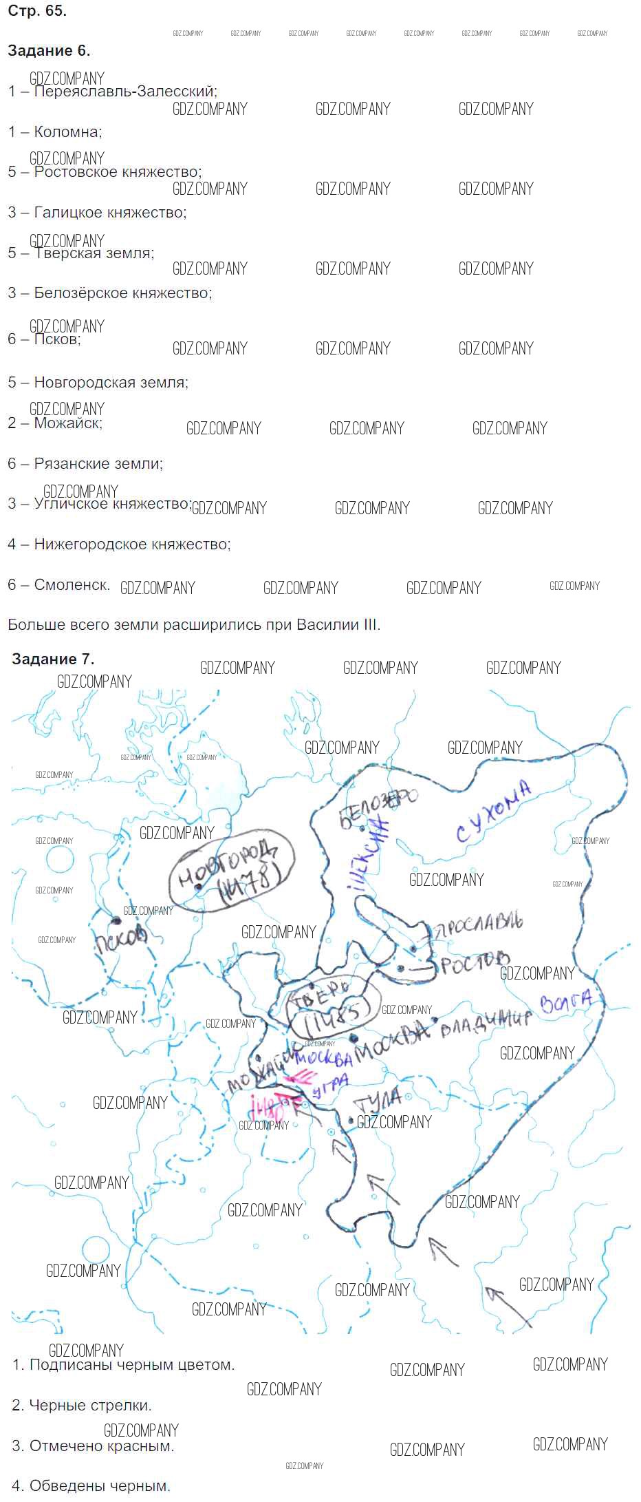 Здесь готовые ответы по Истории за 6 (шестой) класс от Чернова Рабочая тетрадь УМК (издательство: Экзамен от 2017 г.) № 65