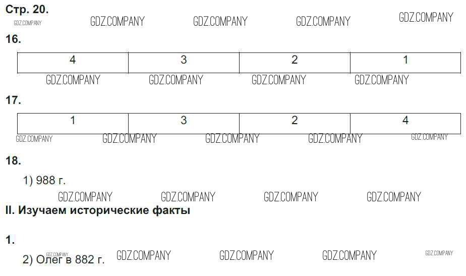 Здесь готовые ответы по Истории за 6 (шестой) класс от Гевуркова Рабочая тетрадь УМК (издательство: Экзамен от 2018 г.) № 20