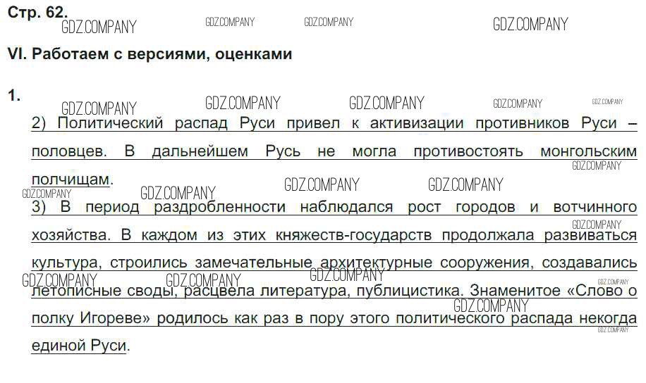 Здесь готовые ответы по Истории за 6 (шестой) класс от Гевуркова Рабочая тетрадь УМК (издательство: Экзамен от 2018 г.) № 62