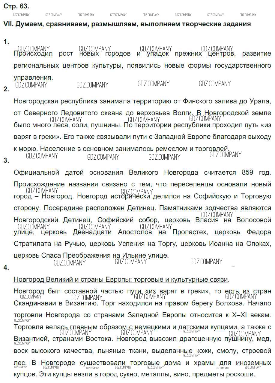 Здесь готовые ответы по Истории за 6 (шестой) класс от Гевуркова Рабочая тетрадь УМК (издательство: Экзамен от 2018 г.) № 63