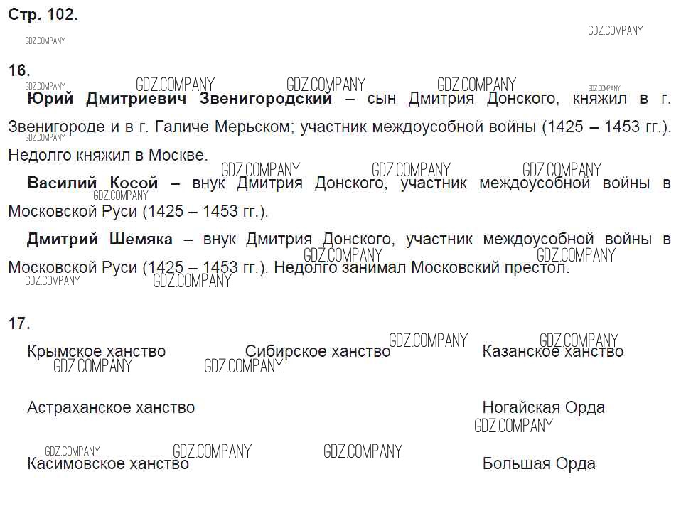 Здесь готовые ответы по Истории за 6 (шестой) класс от Кочегаров Рабочая тетрадь Инновационная школа (издательство: Русское слово от 2017 г.) № стр. 102