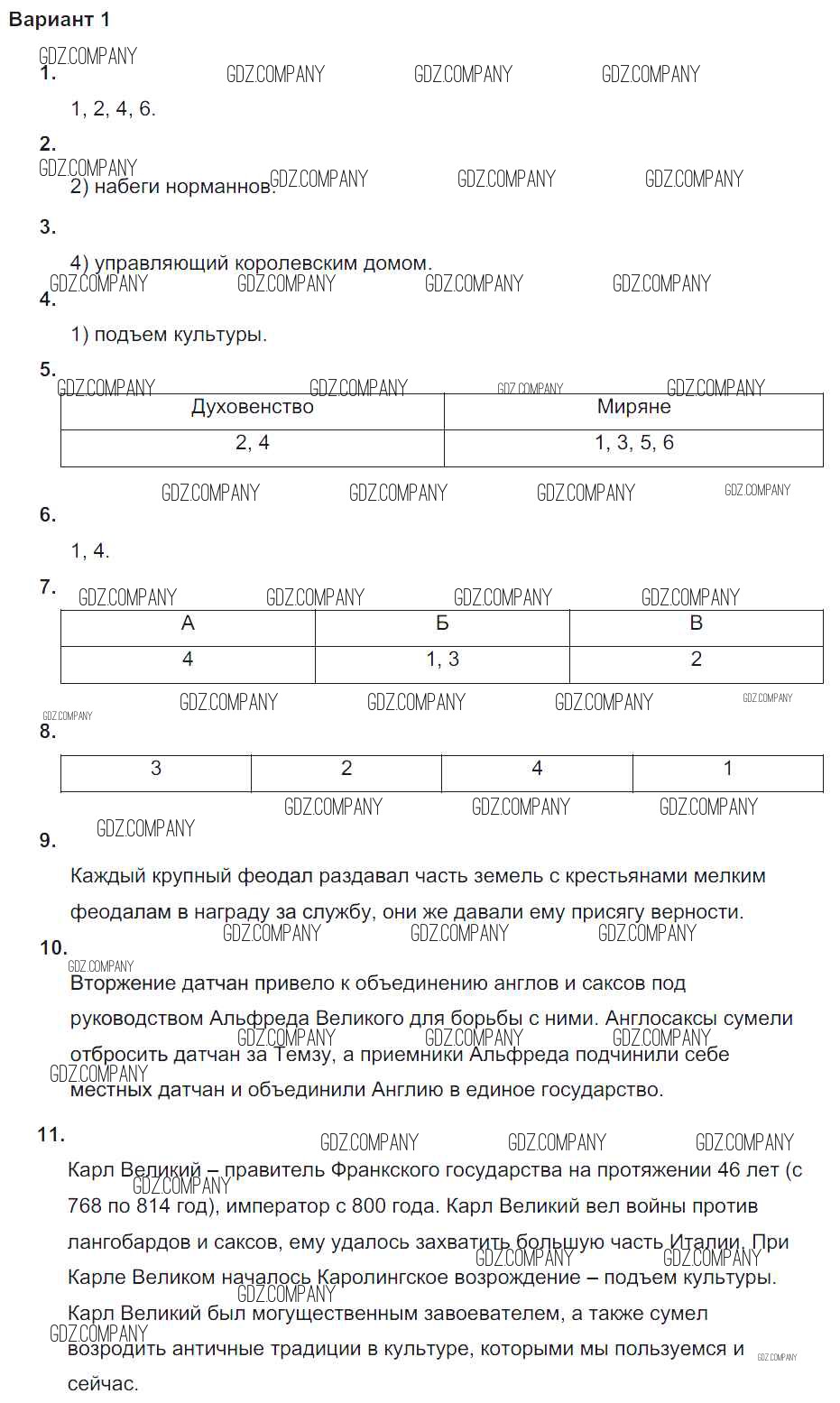 Здесь готовые ответы по Истории за 6 (шестой) класс от Крючкова Проверочные и контрольные работы (издательство: Просвещение от 2014 г.) № вариант-1