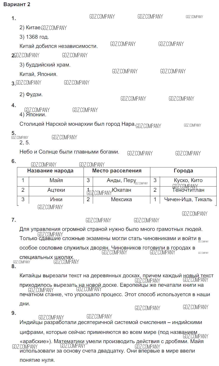 Здесь готовые ответы по Истории за 6 (шестой) класс от Крючкова Проверочные и контрольные работы (издательство: Просвещение от 2014 г.) № вариант-2