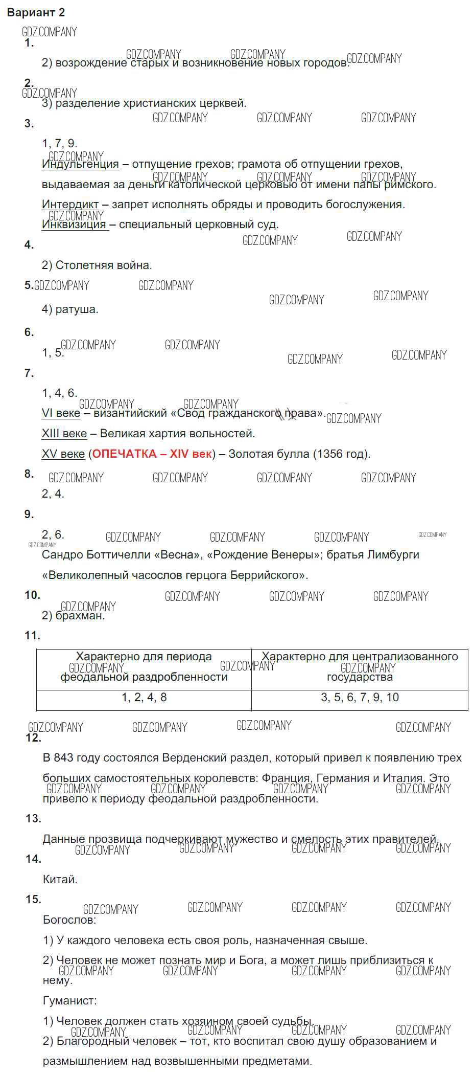 Здесь готовые ответы по Истории за 6 (шестой) класс от Крючкова Проверочные и контрольные работы (издательство: Просвещение от 2014 г.) № вариант-2