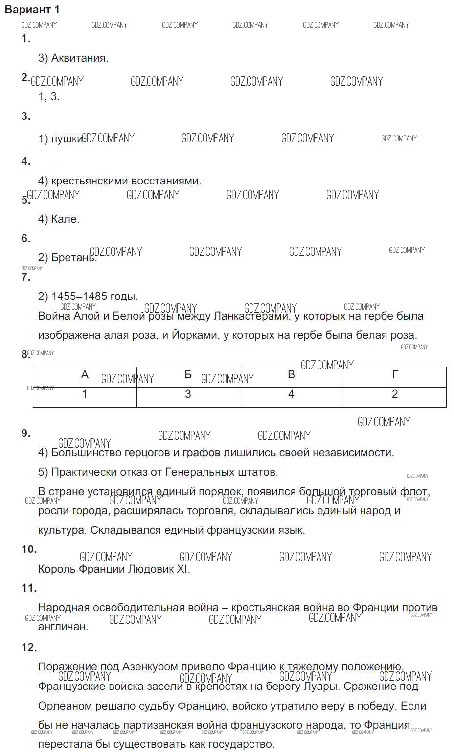 Здесь готовые ответы по Истории за 6 (шестой) класс от Крючкова Проверочные и контрольные работы (издательство: Просвещение от 2014 г.) № вариант-1