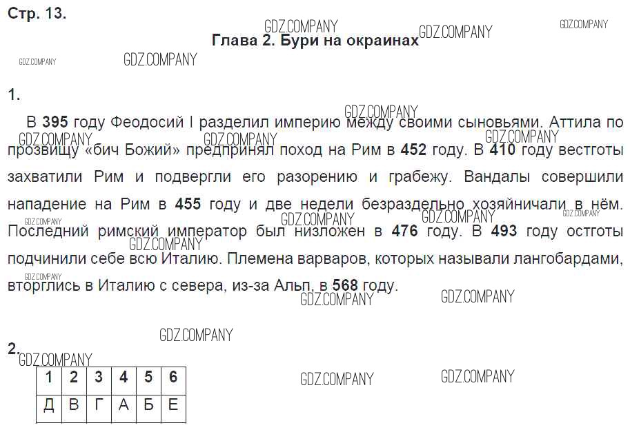 Здесь готовые ответы по Истории за 6 (шестой) класс от Петрова Рабочая тетрадь Инновационная школа (издательство: Русское слово от 2017 г.) № стр. 13