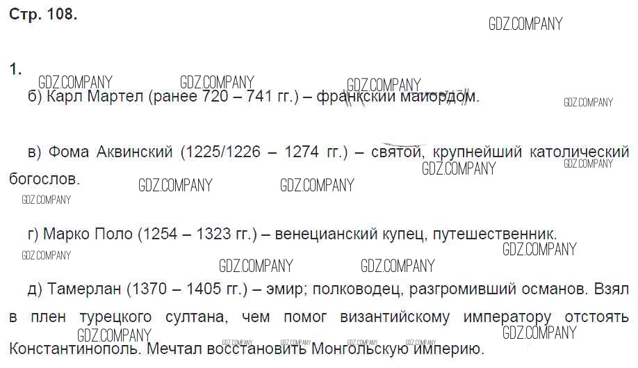 Здесь готовые ответы по Истории за 6 (шестой) класс от Петрова Рабочая тетрадь Инновационная школа (издательство: Русское слово от 2017 г.) № стр. 108