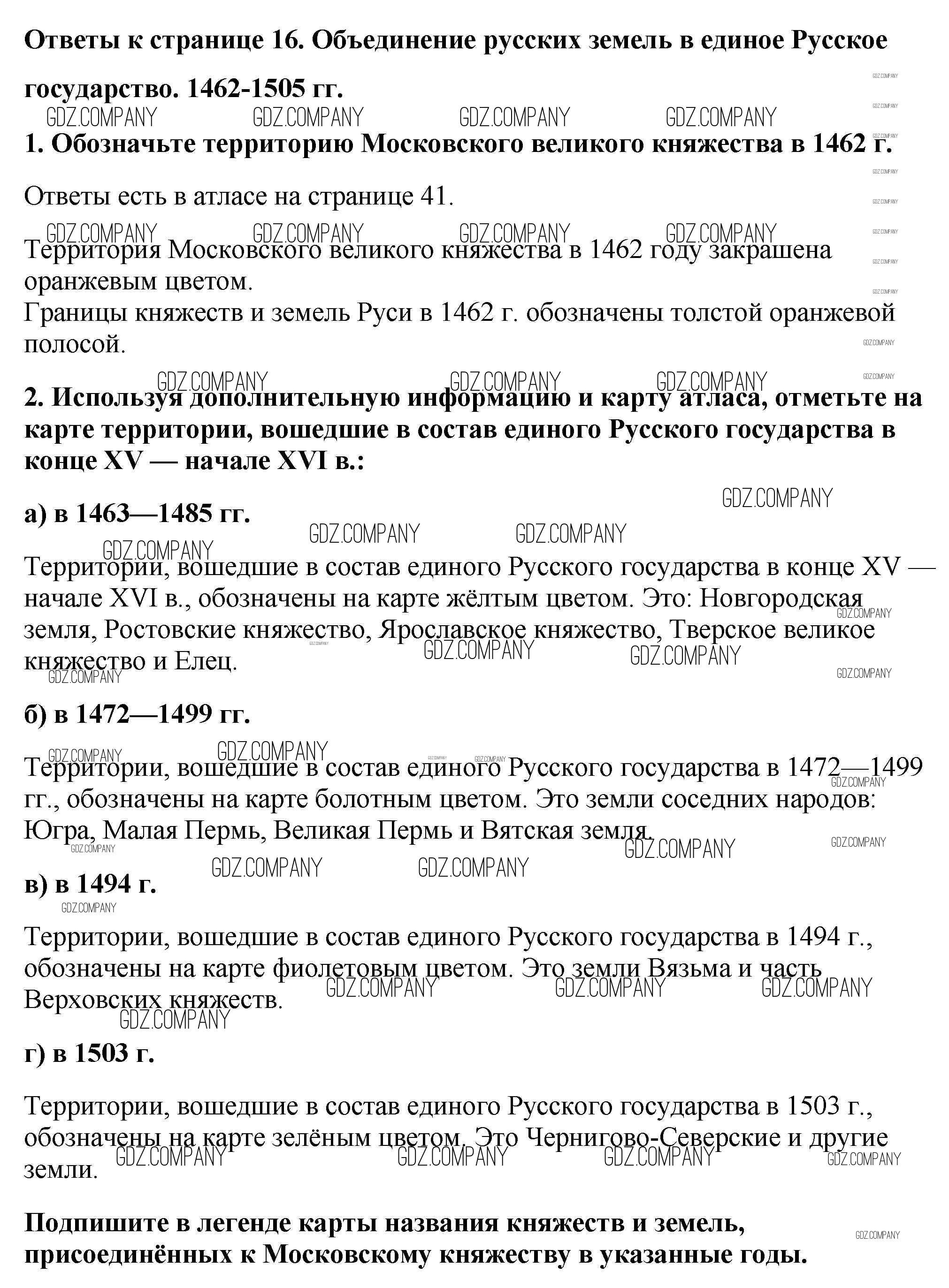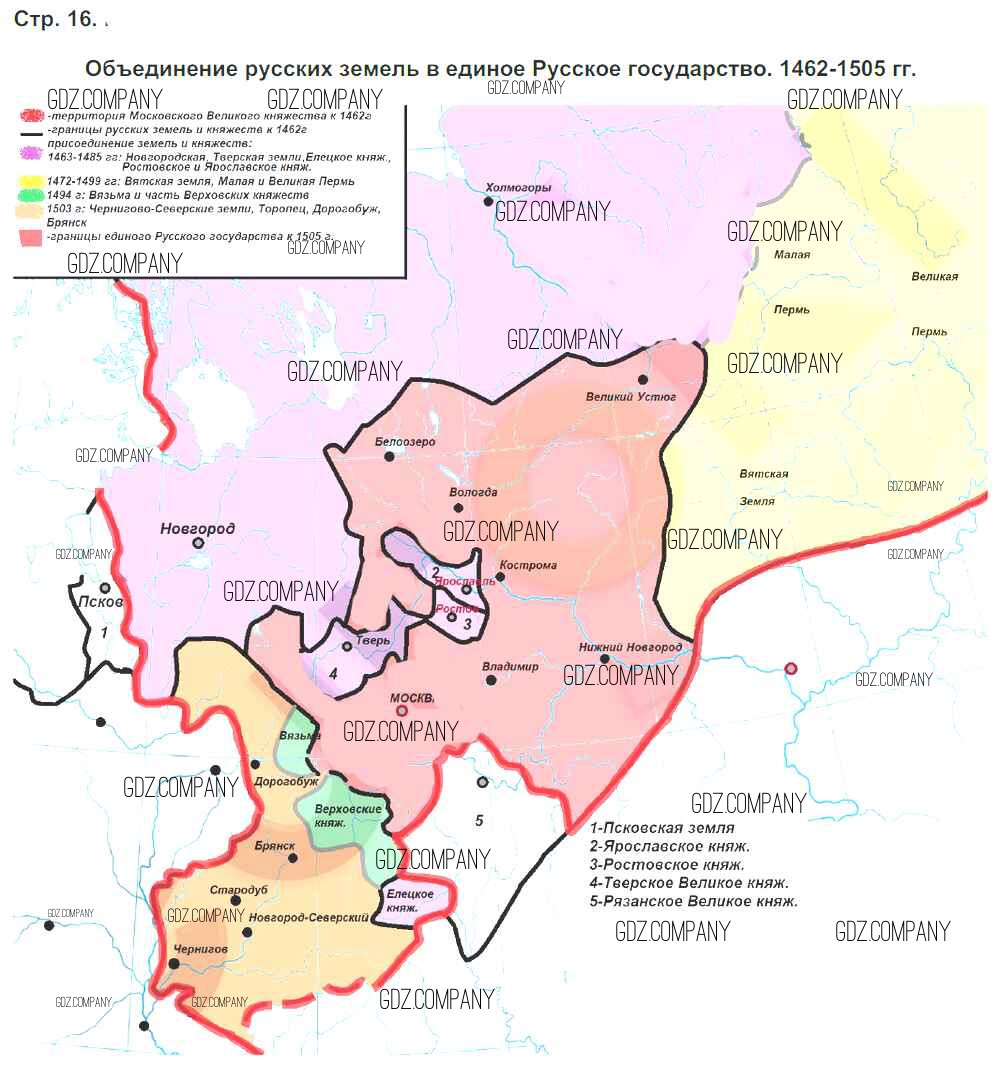 Здесь готовые ответы по Истории за 6 (шестой) класс от Тороп Контурные карты УМК (издательство: Дрофа от 2019 г.) № Страница 16. Объединение русских земель в единое Российское государство. 1462-1505 гг.