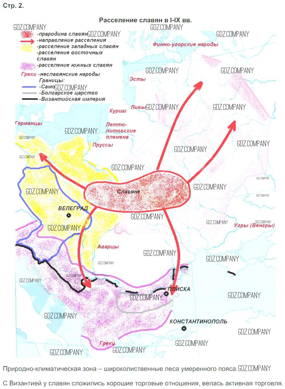 Здесь готовые ответы по Истории за 6 (шестой) класс от Тороп Контурные карты УМК (издательство: Дрофа от 2019 г.) № Страница 2. Расселение славян в 1-9 вв.