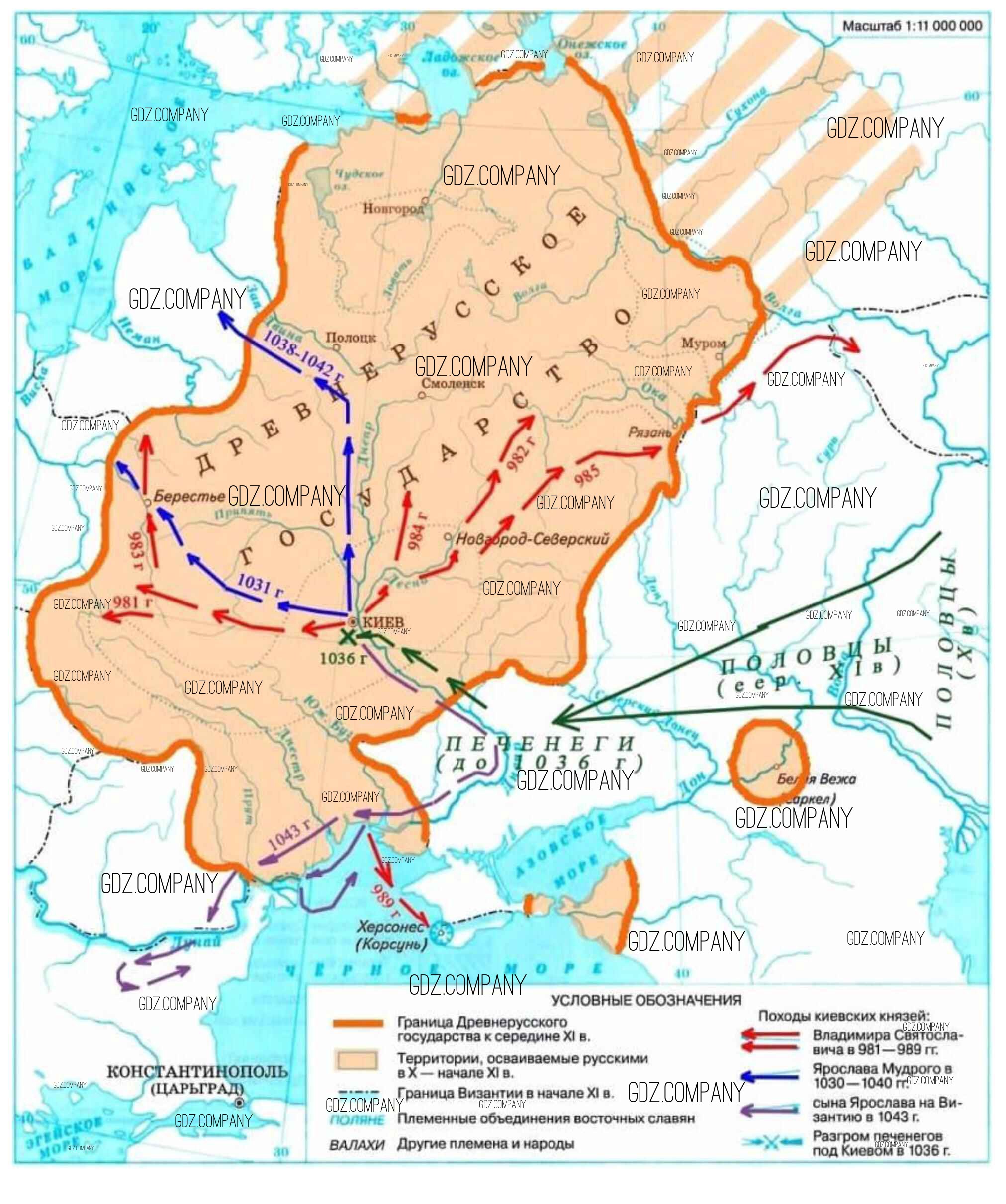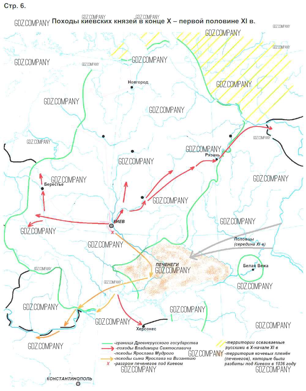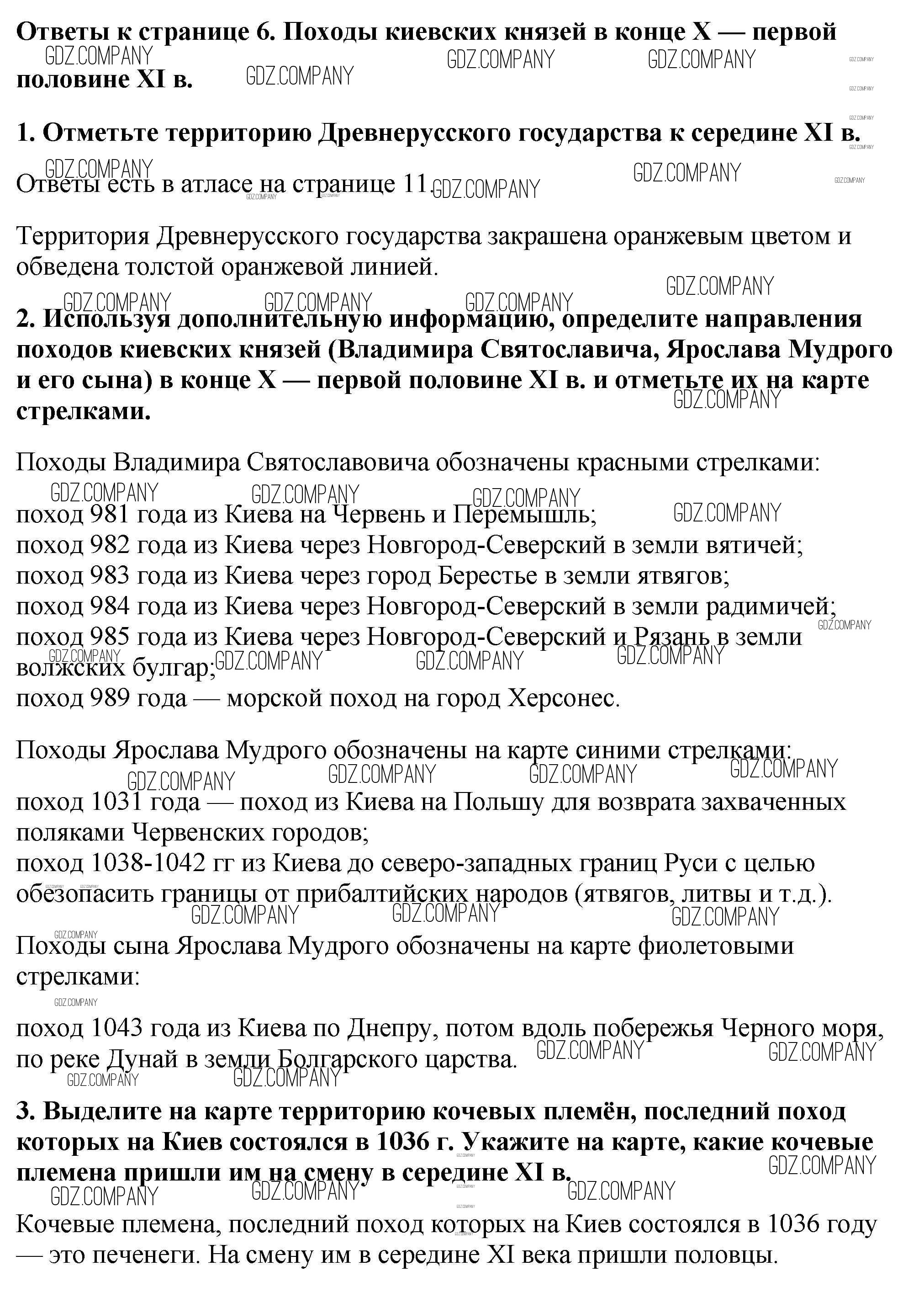 Здесь готовые ответы по Истории за 6 (шестой) класс от Тороп Контурные карты УМК (издательство: Дрофа от 2019 г.) № Страница 6. Походы киевских князей в конце 10- первой половине 11 в.