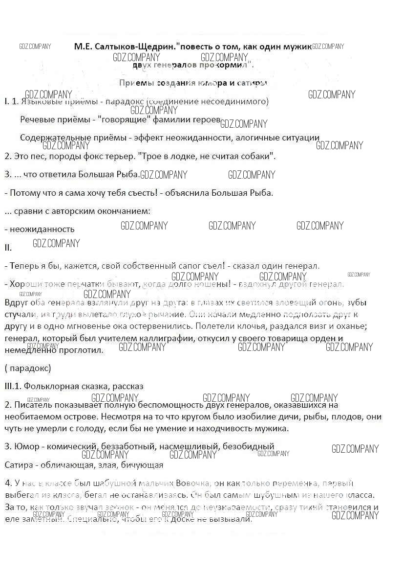 Здесь готовые ответы по Литературе за 6 (шестой) класс от Бунеев, Бунеева, Чиндилова Рабочая тетрадь Школа 2100 (издательство: Баласс от 2015 г.) № М.Е. Салтыков-Щедрин. Повесть о том, как один мужик двух генералов прокормил. Приёмы создания юмора и сатиры