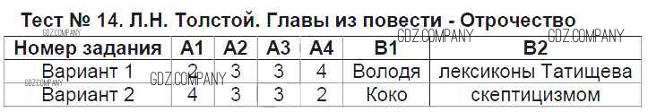 Здесь готовые ответы по Литературе за 6 (шестой) класс от Королева Контрольно-измерительные материалы (КИМ) (издательство: ВАКО от 2015 г.) № Тест №14. Главы из повести - Отрочество