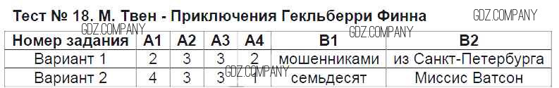Здесь готовые ответы по Литературе за 6 (шестой) класс от Королева Контрольно-измерительные материалы (КИМ) (издательство: ВАКО от 2015 г.) № Тест №18. Приключения Гекльберри Финна