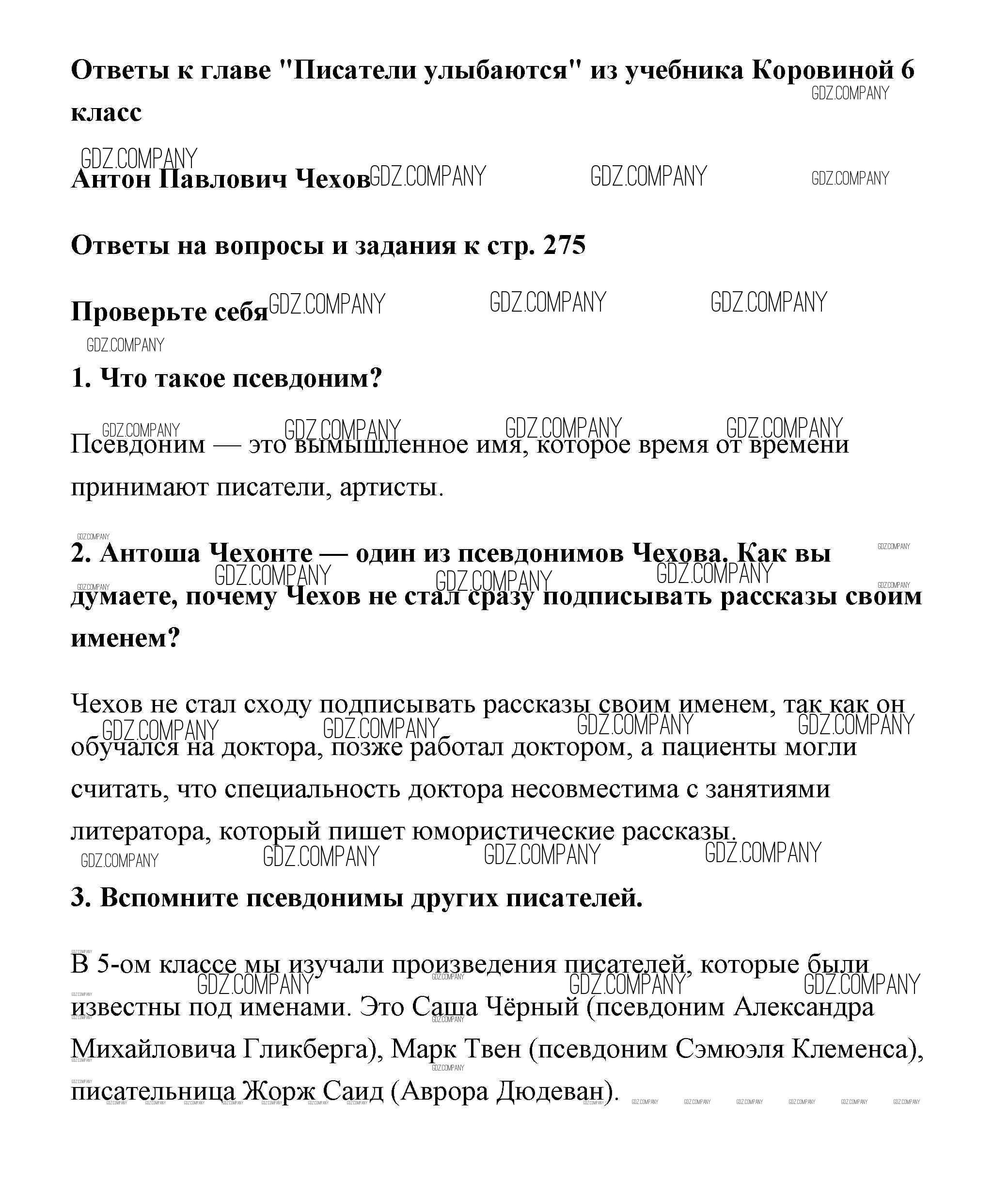 Здесь готовые ответы по Литературе за 6 (шестой) класс от Полухина, Коровина, Журавлев Учебник (издательство: Просвещение от 2016 г.) № страница 275
