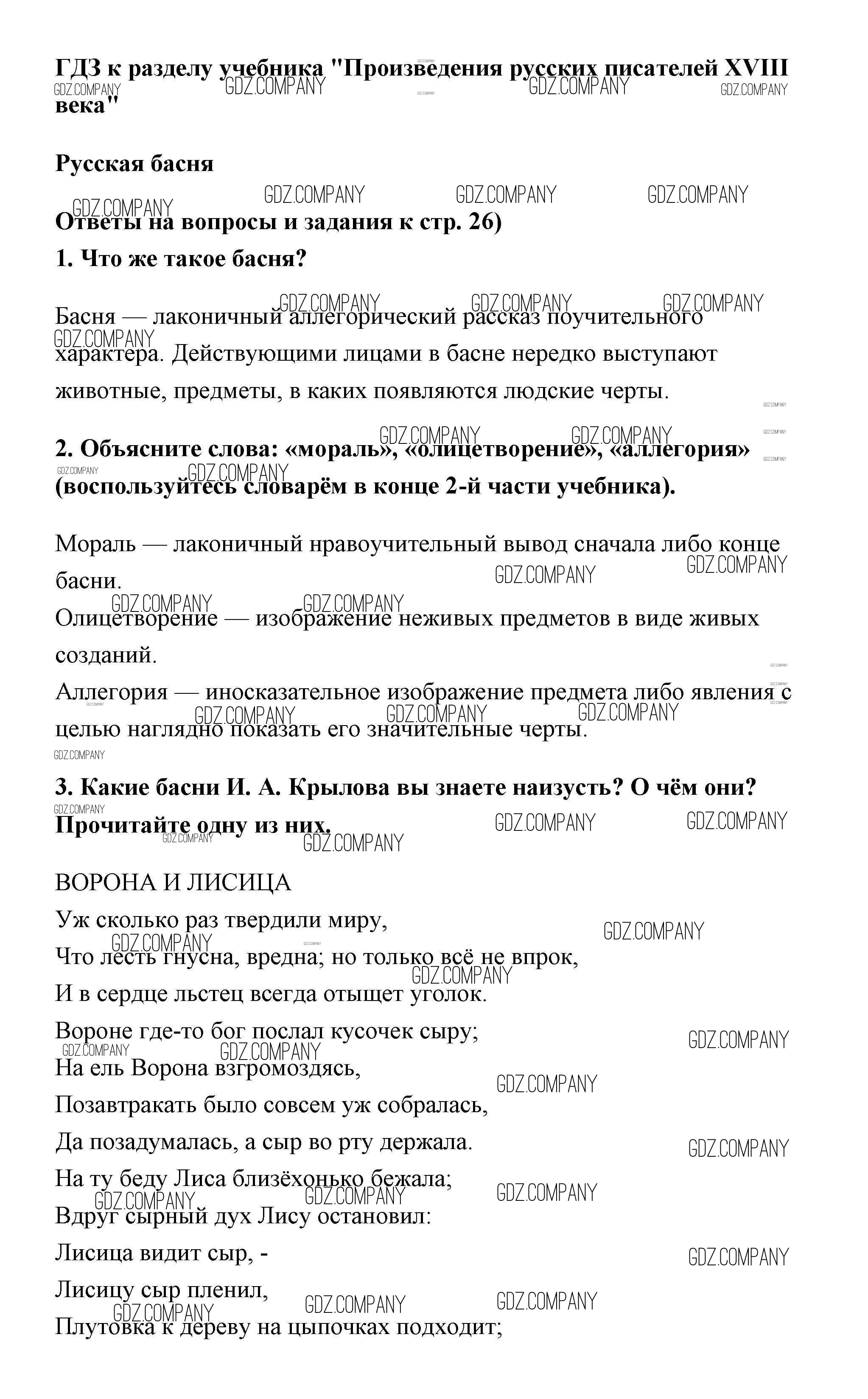 Здесь готовые ответы по Литературе за 6 (шестой) класс от Полухина, Коровина, Журавлев Учебник (издательство: Просвещение от 2016 г.) № страница 26