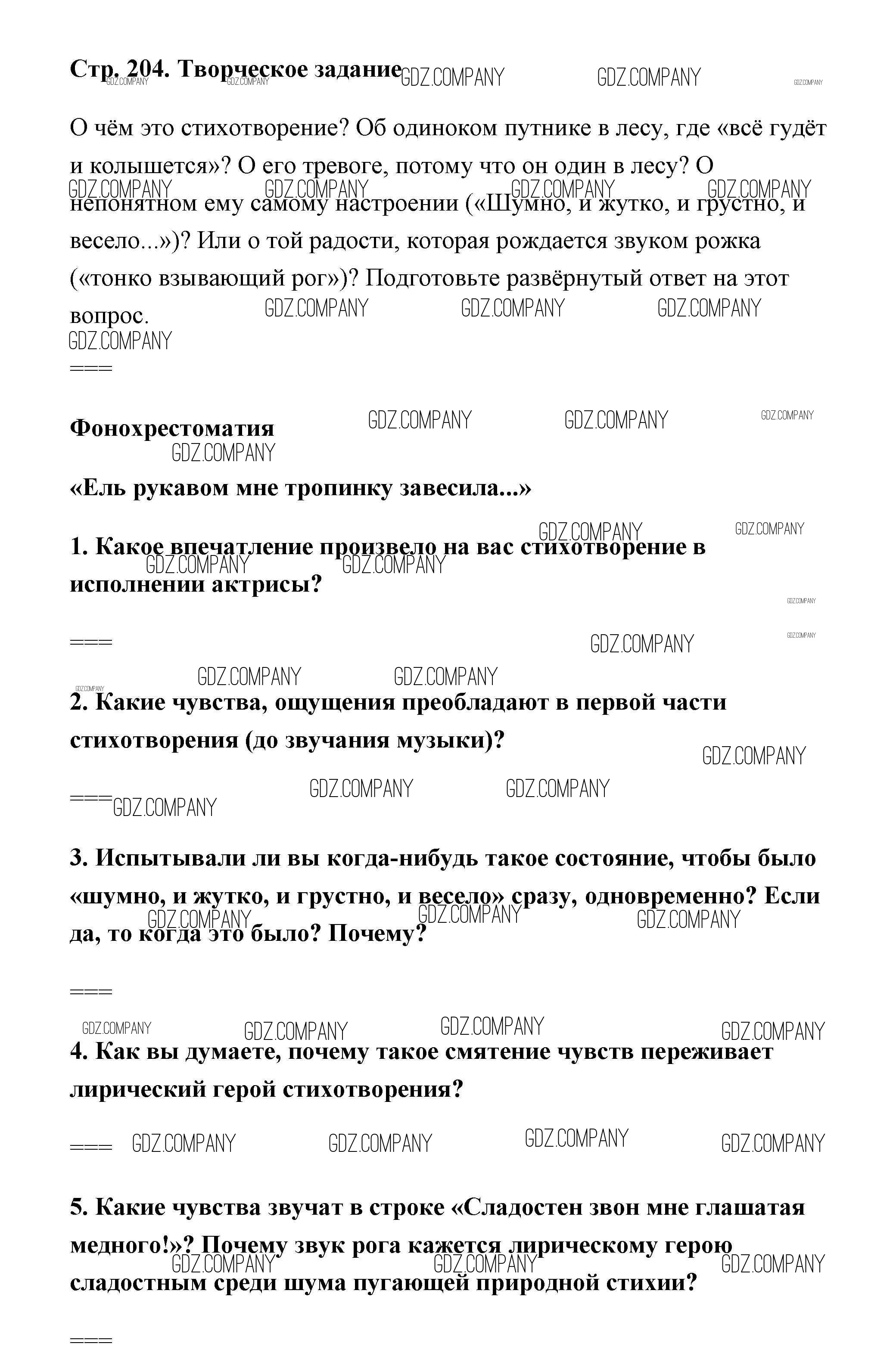 Здесь готовые ответы по Литературе за 6 (шестой) класс от Полухина, Коровина, Журавлев Учебник (издательство: Просвещение от 2016 г.) № страница 204