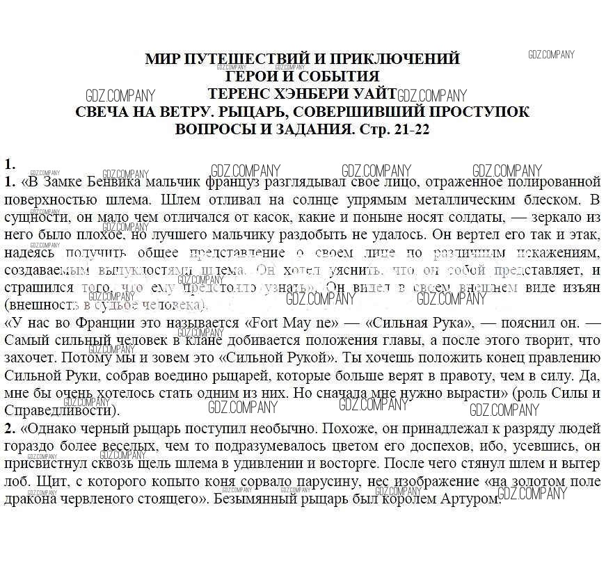 часть 2 / Теренс Хэнбери Уайт. Свеча на ветру. Рыцарь, совершивший проступок / Вопросы и задания / 1