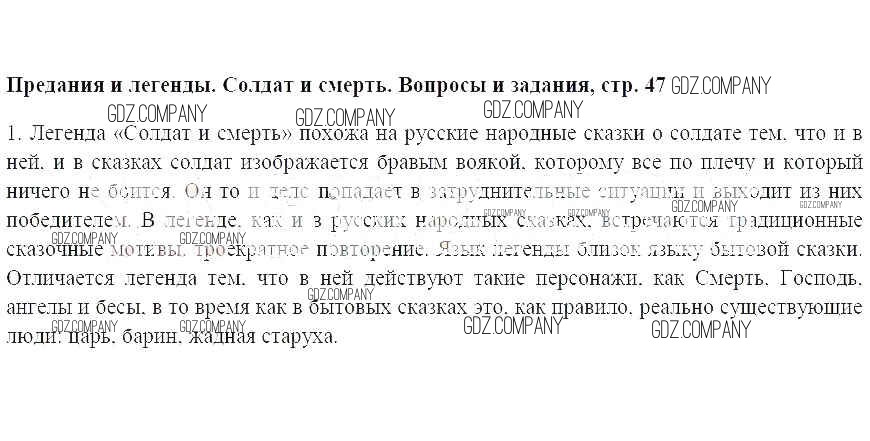 часть 1 / Предания и легенды. Солдат и смерть. Вопросы и задания, стр. 47 / 1