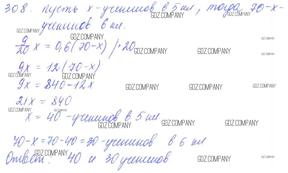 Здесь готовые ответы по Математике за 6 (шестой) класс от Чесноков, Нешков Дидактические материалы (издательство: Академкнига от 2014 г.) № 308