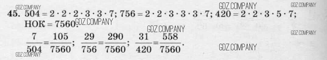 Здесь готовые ответы по Математике за 6 (шестой) класс от Чесноков, Нешков Дидактические материалы (издательство: Академкнига от 2014 г.) № 45