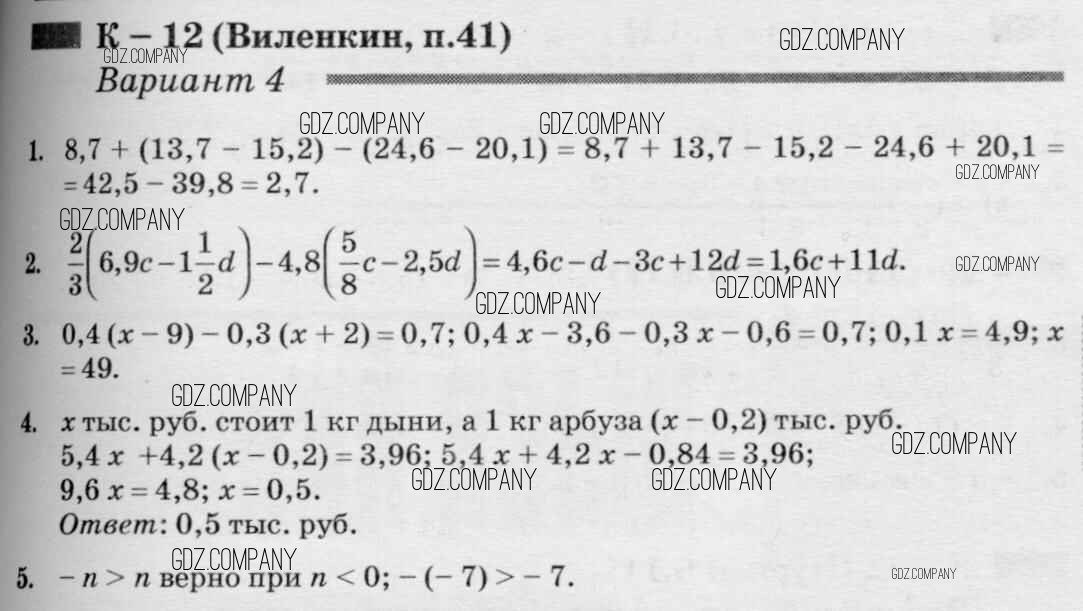 контрольная работа / к учебнику Виленкина / кр-12 / 4