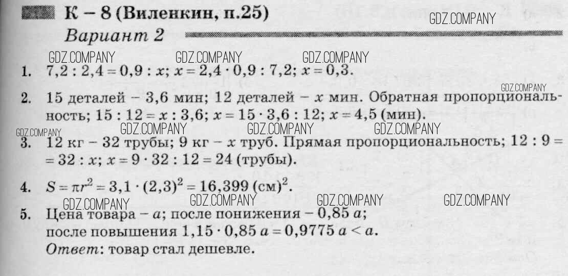 контрольная работа / к учебнику Виленкина / кр-8 / 2