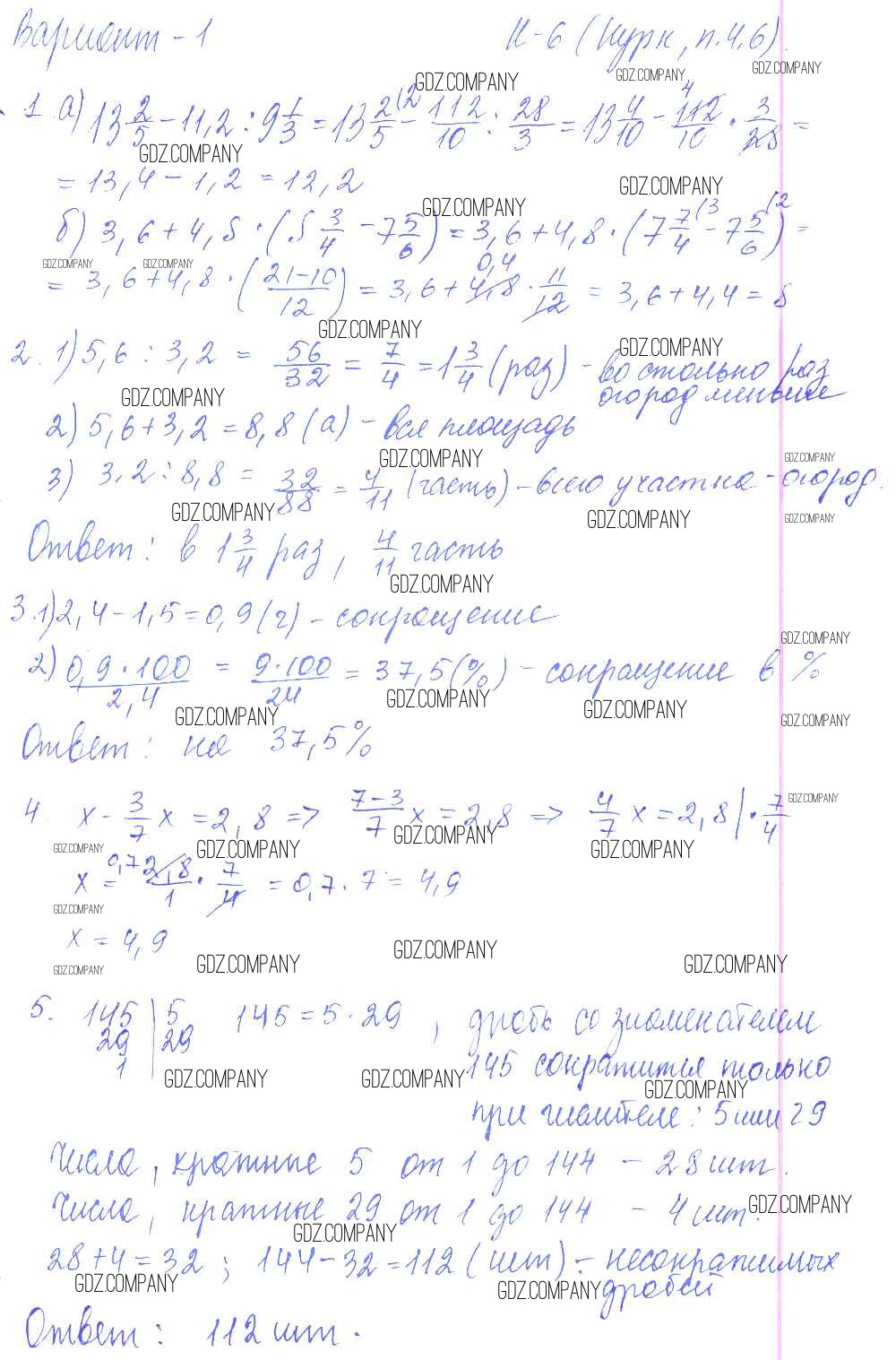 Здесь готовые ответы по Математике за 6 (шестой) класс от Чесноков, Нешков Дидактические материалы (издательство: Академкнига от 2014 г.) № 1
