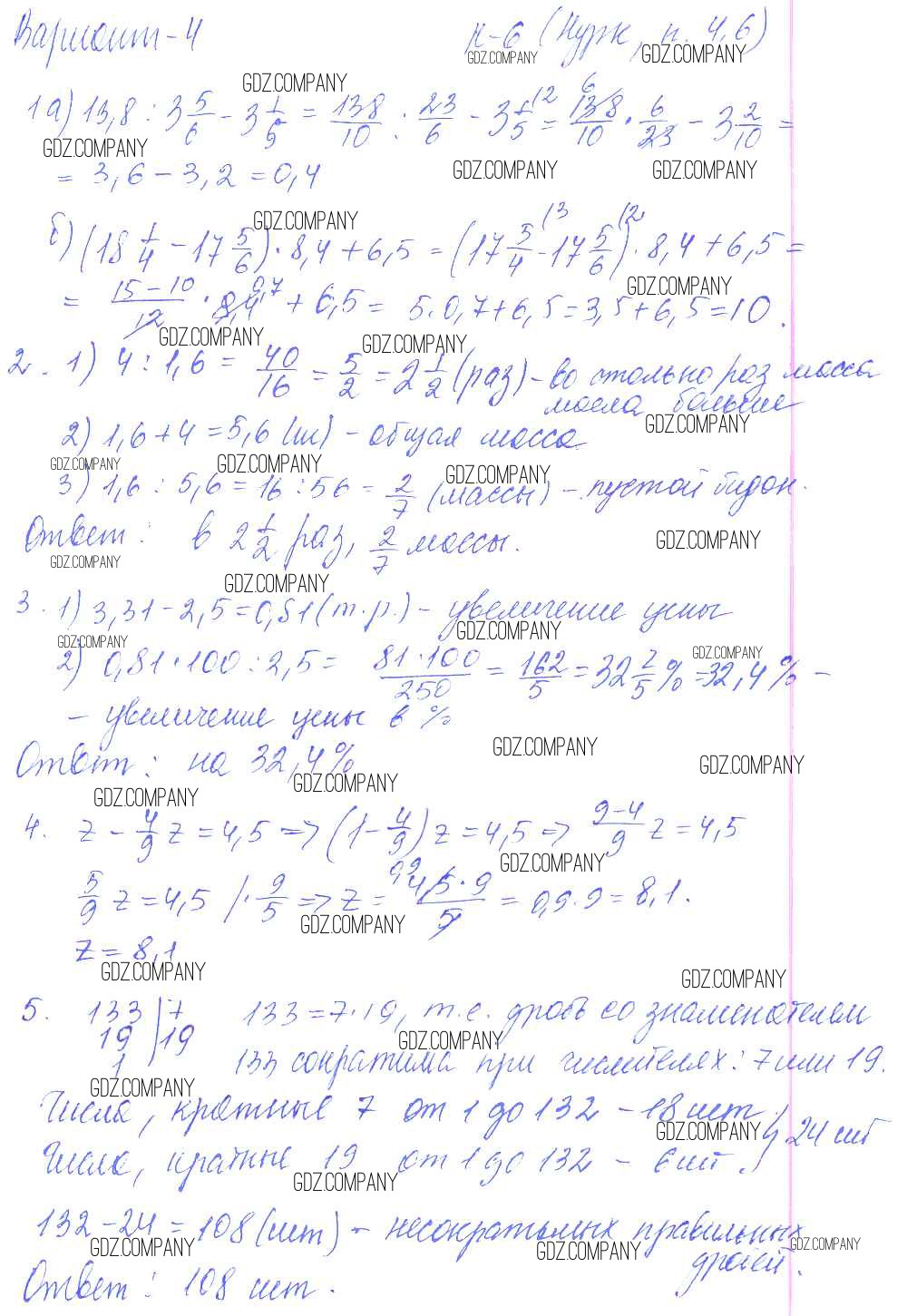 Здесь готовые ответы по Математике за 6 (шестой) класс от Чесноков, Нешков Дидактические материалы (издательство: Академкнига от 2014 г.) № 4