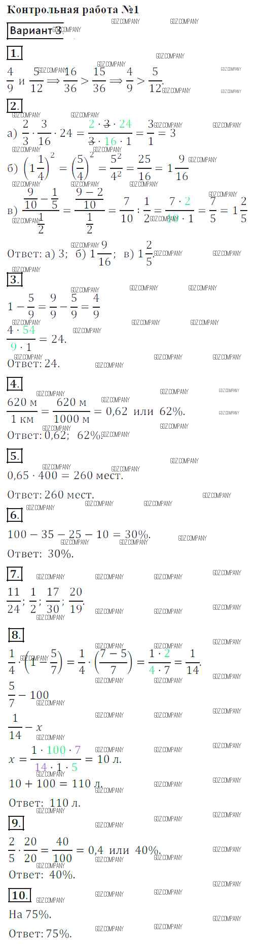 Здесь готовые ответы по Математике за 6 (шестой) класс от Кузнецова, Минаева, Рослова, Суворова Контрольные работы (издательство: Просвещение от 2017 г.) № 3