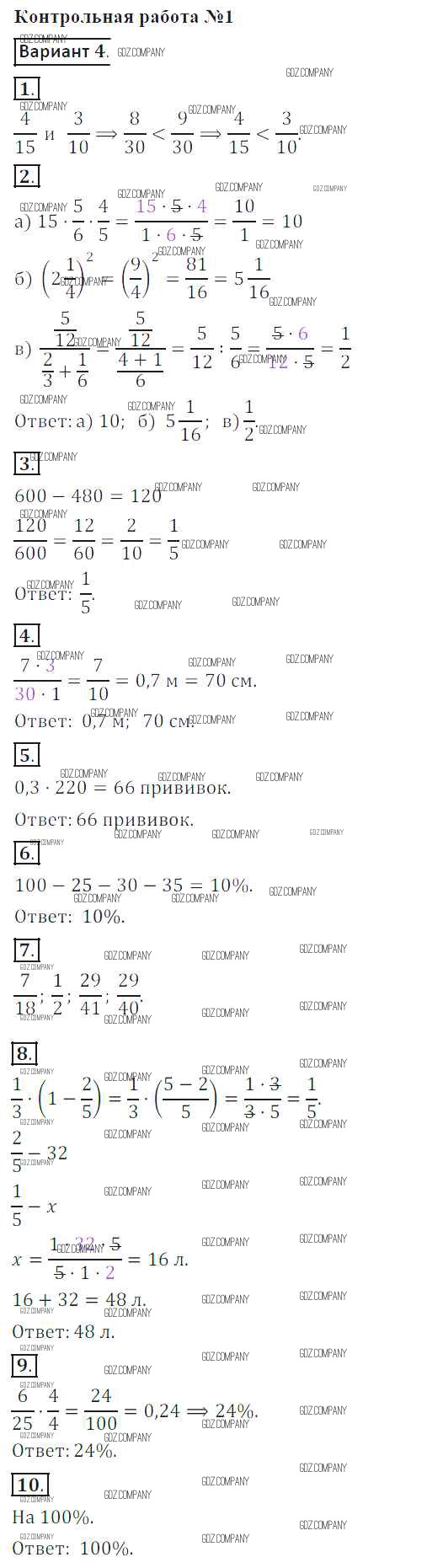 Здесь готовые ответы по Математике за 6 (шестой) класс от Кузнецова, Минаева, Рослова, Суворова Контрольные работы (издательство: Просвещение от 2017 г.) № 4