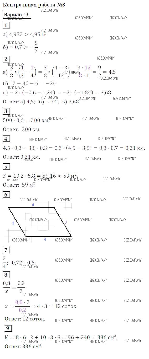 Здесь готовые ответы по Математике за 6 (шестой) класс от Кузнецова, Минаева, Рослова, Суворова Контрольные работы (издательство: Просвещение от 2017 г.) № 3