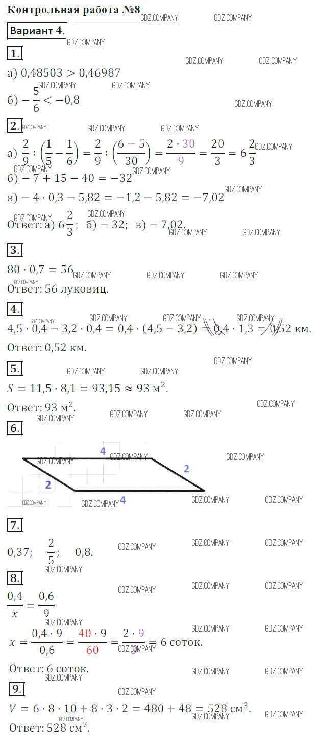 Здесь готовые ответы по Математике за 6 (шестой) класс от Кузнецова, Минаева, Рослова, Суворова Контрольные работы (издательство: Просвещение от 2017 г.) № 4