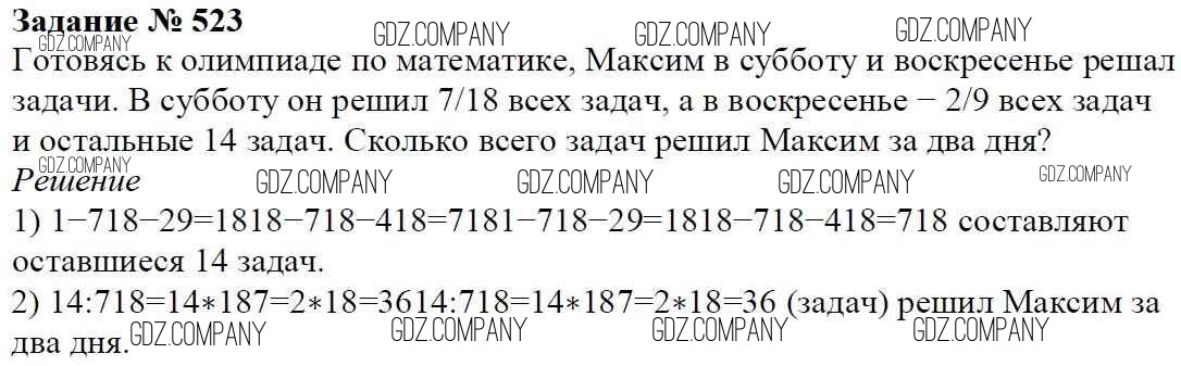 Здесь готовые ответы по Математике за 6 (шестой) класс от Мерзляк, Полонский, Якир Учебник Алгоритм успеха (издательство: Вентана-граф от 2016 г.) № 523