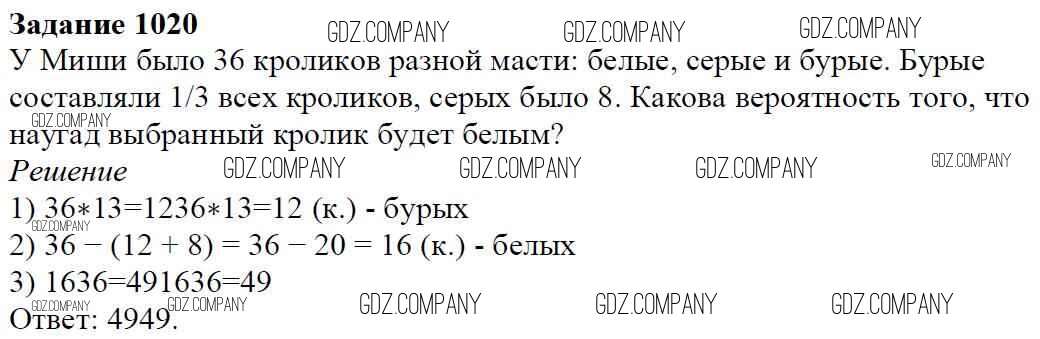 Здесь готовые ответы по Математике за 6 (шестой) класс от Мерзляк, Полонский, Якир Учебник Алгоритм успеха (издательство: Вентана-граф от 2016 г.) № 1020