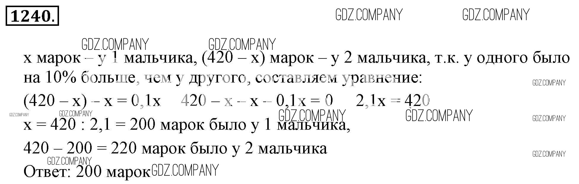 Здесь готовые ответы по Математике за 6 (шестой) класс от Никольский, Потапов, Решетников, Шевкин Учебник МГУ - школе (издательство: Просвещение от 2014 г.) № 1240
